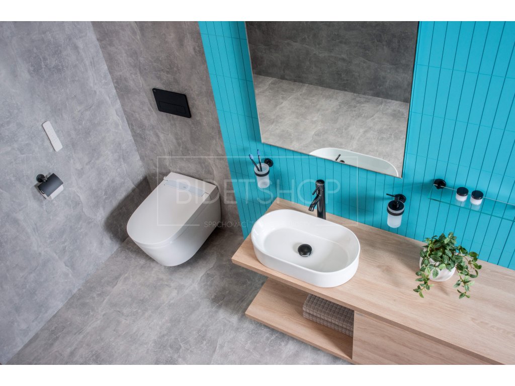 - Moderní rimless/rimfree kapotovaná mísa s ovládacím tlačítkem