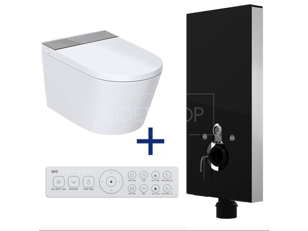 ADAPTA Pro Plus závěsná sprchovací toaleta + KOMBI BLOCK BLACK WALL viditelný WC modul